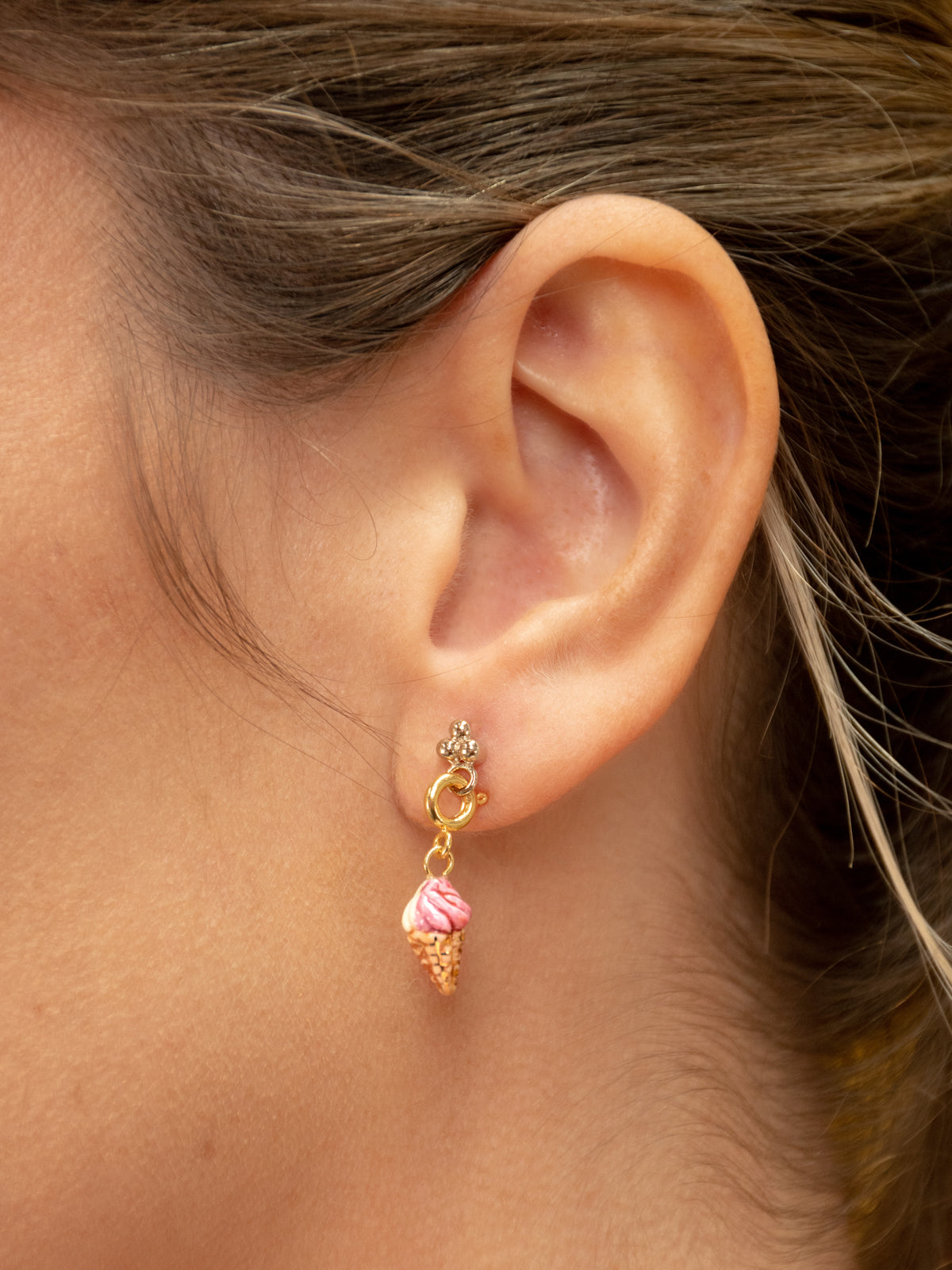 Ice charm in porcelain and gold-plated brass.