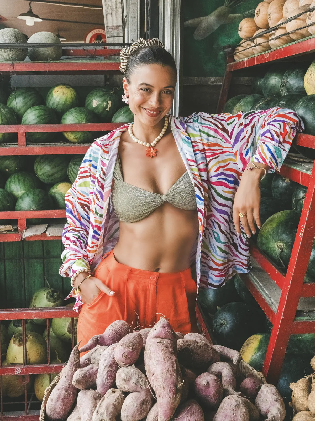 - Motif "Crazy Tiger" imaginé et dessiné à la main par Nancy, co-créatrice de Nach et imprimé en all over. Une œuvre d’art à porter.