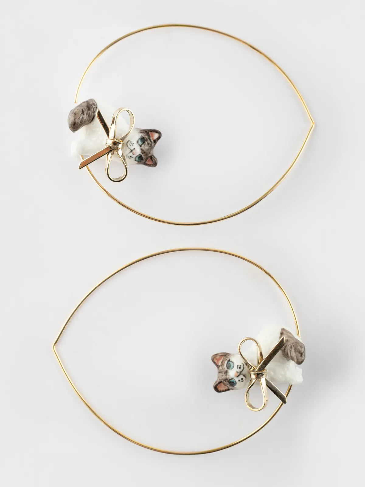 Large Ragdoll cat hoop earrings with bow