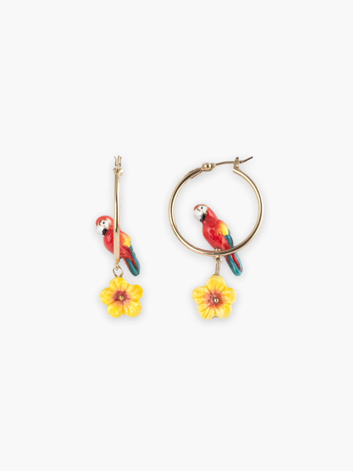Créoles rondes perroquet ara et fleur